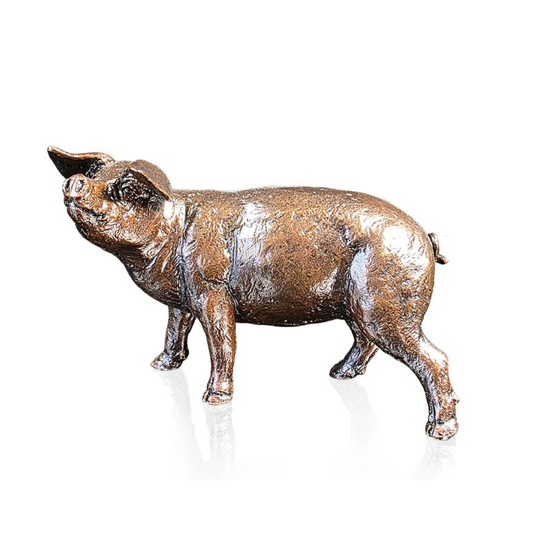 The Gloucester Old Spot is made in solid foundry bronze using the ancient method of lost wax casting. The design is finished by the art of patination where various acids are applied to the surface of the bronze and heat applied to create a deep rich brown patina. Then bronze is then sealed with a special wax which further enhances the colour and protects the bronze for years to come.